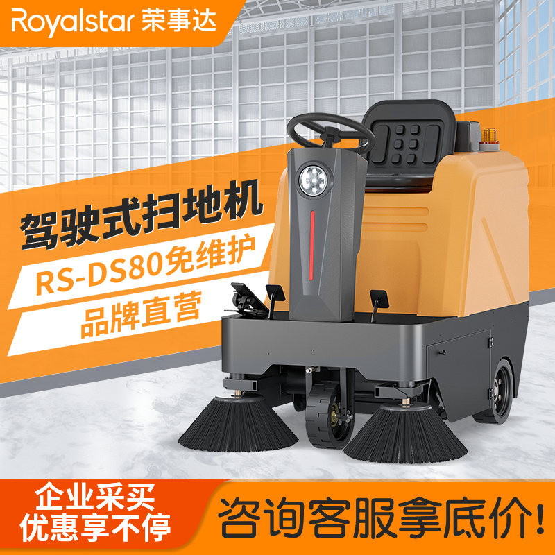 榮事達(dá)DS80 駕駛式掃地機(jī)設(shè)備配備了橡膠防滑大輪;安全防水防觸充電口;前大燈防撞、防水光線強(qiáng),解決了使用過程中的一...