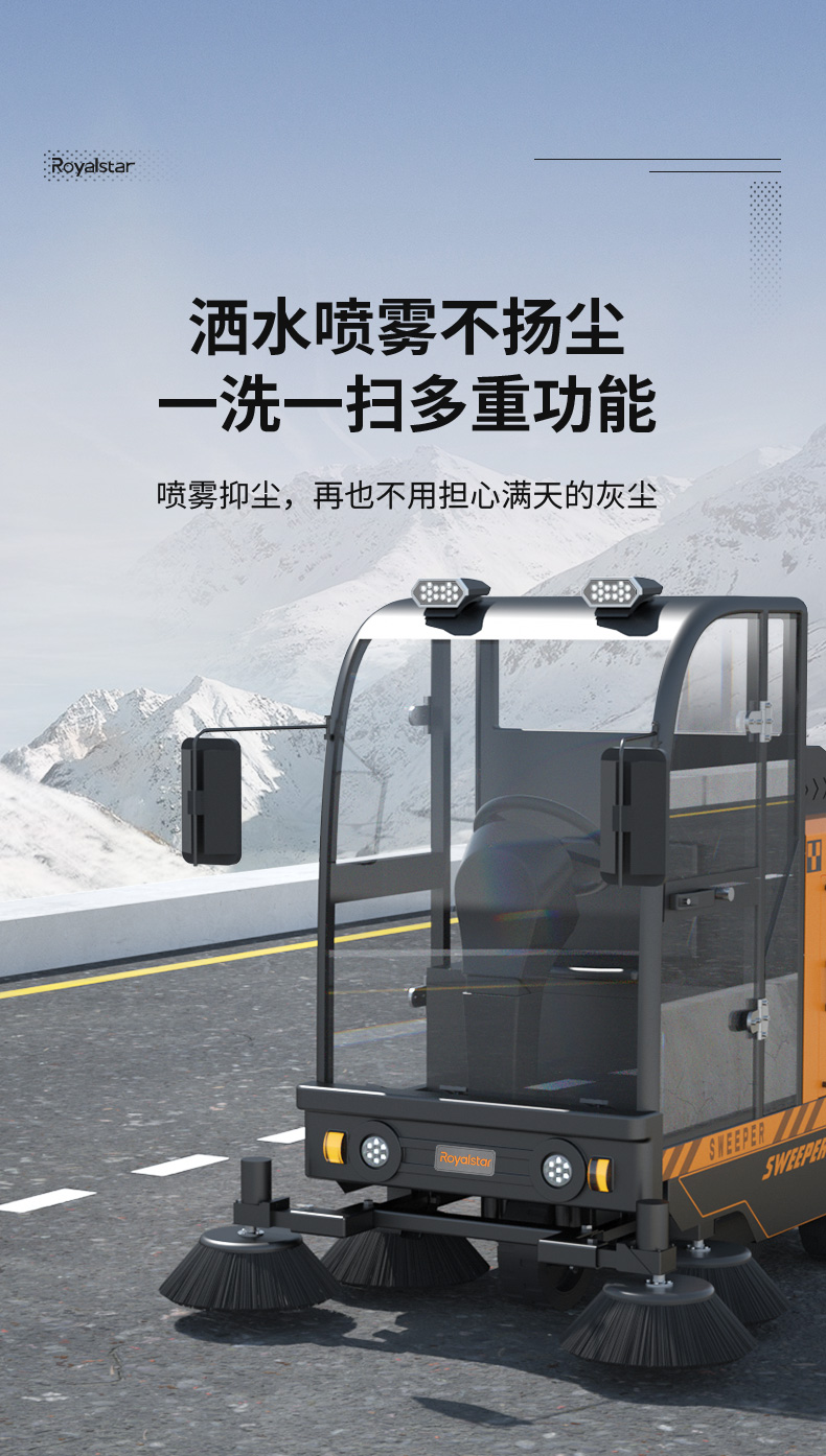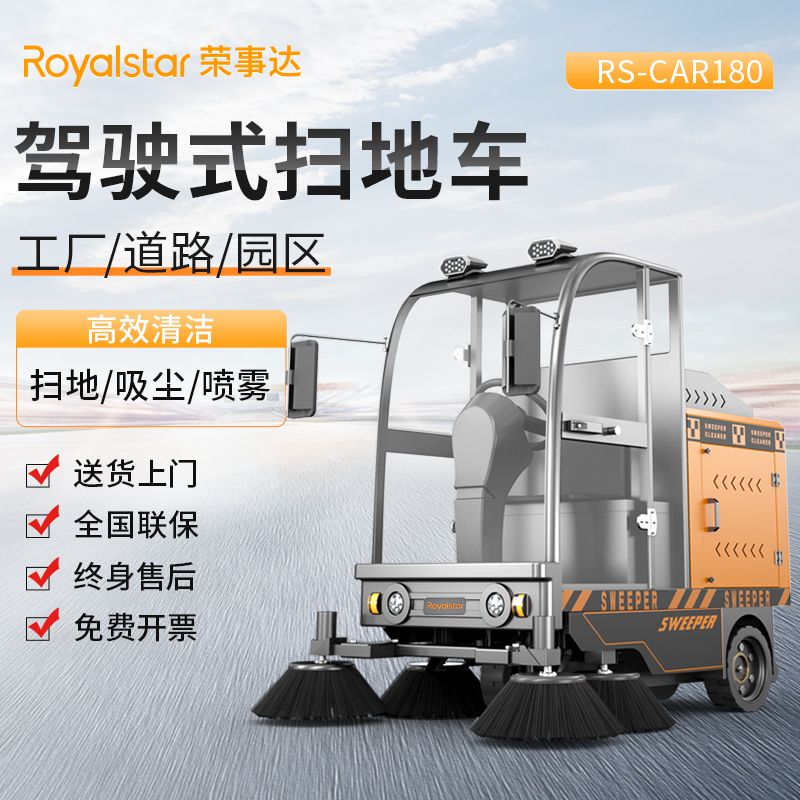 榮事達(dá)RS-CAR180 駕駛式掃地機(jī)配備了風(fēng)扇,無需擔(dān)心夏季長時(shí)間戶外使用時(shí)的高溫問題。方向盤操作更加靈活方便,配...