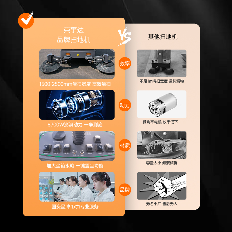 之前采買過一臺綠色的掃地車,用了不到半年機器就有問題掃不了,找了他們廠家也不愿意過來修,打了幾次視頻也找不到問題,老板說以后再也不能買雜牌子,這次重新采買了一臺榮事達牌子的掃地車,他們送貨上門還承諾有問題可以上門維修的,比較放心,現在每天門衛大叔開著在廠區轉兩圈,客戶來參觀都是干干凈凈的,而且一點不費事