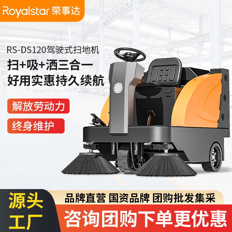 榮事達(dá)RS-DS120 駕駛式掃地機(jī)設(shè)備配備了注水口、桶部萬向輪、安全扶手,自主研發(fā)的高品質(zhì)專用電機(jī),使用起來更加安...